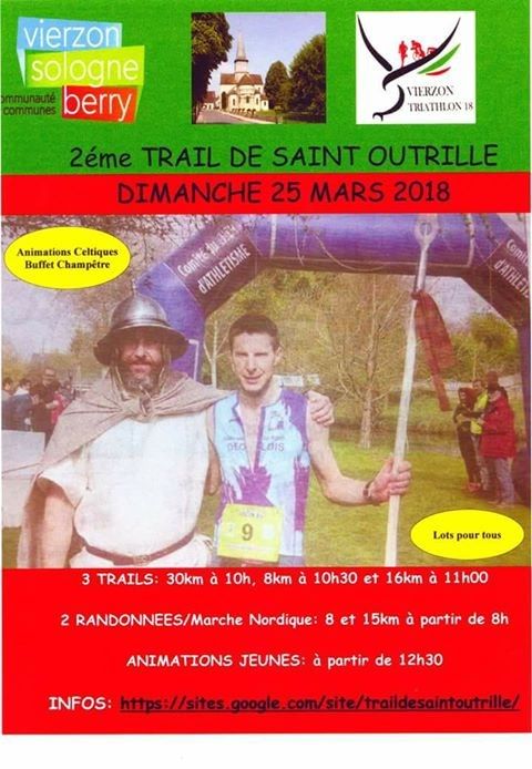 Le 2éme Trail de Saint Outrille est organisé par le club du VIERZON TRIATHLON 18 et la commune de Saint Outrille. Evènement sportif proposant trois épreuves de course à pied de pleine nature entre les villages de Saint Outrille, Gracay, Bagneux, Orville et Anjouin traversant les champs et la forêt.