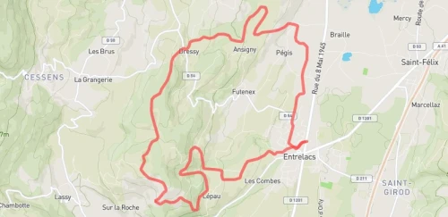 Un parcours rapide avec de très beaux points de vue sur le massif des Bauges, le Parmelan. Une alternance de petites routes, de chemins dans les champs ou le long de ruisseaux Catégories autorisées CA->V5.