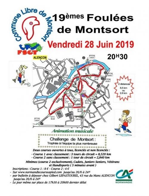 Les Foulées de Montsort. Le départ sera donné rue du Mans (devant l'église de Montsort). à 20h30 (5mn avant