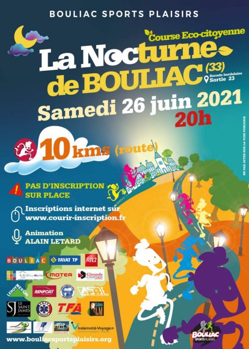Epreuve de 10 km sur les routes et chemins de Bouliac, : Circuit de 2 boucles de 5 km avec un départ à 21 h 15, Course en nocturne sur un site exceptionnel aux portes de l'agglomération de Bordeaux, Nombreux public et animations permanentes.