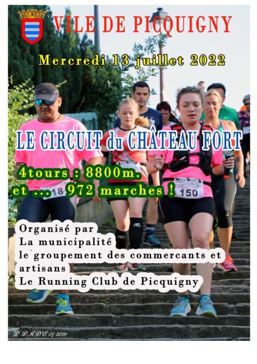 Course de 8800 m en 4 tours de 2200 m avec la montée a chaque tour de l' escalier ST martin pour un total de 588 Marches et la descente de l 'escalier St Jean pour un total 384 Marches à descendre