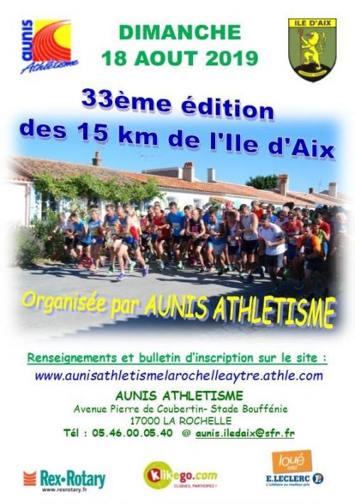 L’AUNIS ATHLETISME organise sur l'ILE d'AIX, une épreuve pédestre de 15 km, ouverte à toutes les personnes nées au plus tard en 2002.