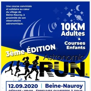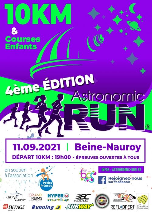 L'Astronomic Run est une course conviviale et solidaire au coeur du village de Beine-Nauroy, à proximité de son observatoire astronomique. Catégories autorisées CA->V5.