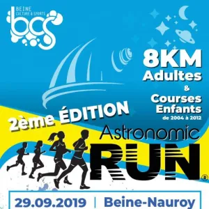 L’association Beine Culture et Sports organise l'Astronomic Run dans Beine-Nauroy (Marne). Située à 15 minutes de Reims, l’astronomic run : c’est une course à pied conviviale et solidaire, au cœur du village et à proximité de son observatoire astronomique.