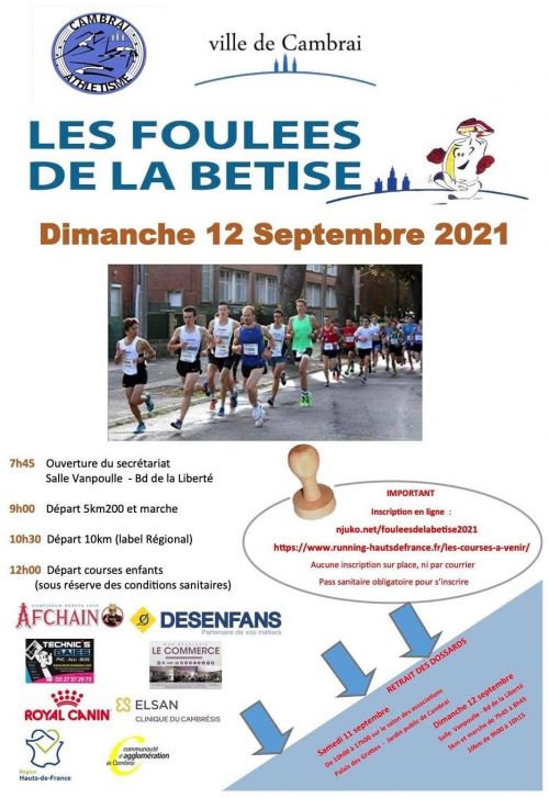 Evénement organisé par l’Athlétic Club de Cambrai. Il comprend des courses de 5km, 10km (qualificatif France), 1000 m (enfants) ainsi qu’une randonnée des familles sur 5kms. Ce sera un parcours bien différent de l’an passé, rénovation de la piste oblige! Nous avons été dans l’obligation de trouver un nouveau parcours alliant la sécurité des coureurs (imposées par les services de Police) et rester sur la commune de Cambrai. Surement moins roulant car vous aurez à franchir le pont Pompidou dans les deux sens à plusieurs reprises. Alors préparez-vous en août en faisant quelques côtes. Mais le public pourra voir passer les coureurs à 5 reprises sur le boulevard de la Liberté.