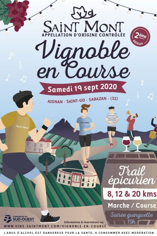 Rendez-vous au village d’Aignan pour le grand départ de Vignoble en Course. Découvrez un trail épicurien, qui se veut familial et avant tout adapté au rythme de chacun. 4 formats de courses 21, 12, 8 ou 2 km : pour les sportifs, les épicuriens, les marcheurs et les enfants… A toutes les étapes, des dégustations, des animations, de la musique… Les cuvées de l’AOC Saint Mont et les produits du terroir vont enchanter les papilles.