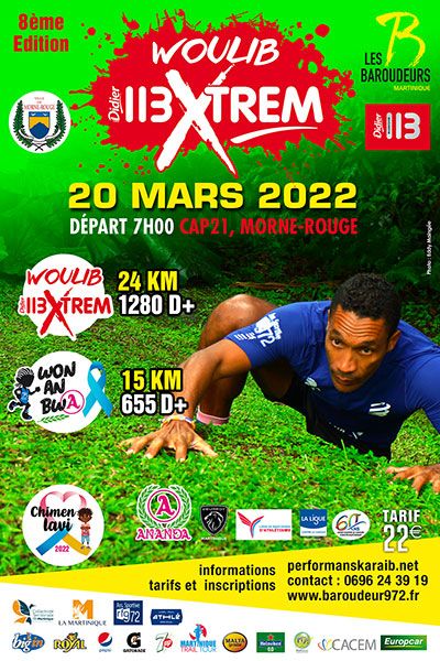 WOULIB avec une nouveauté, la « WOULIB 113Xtrem ». Ce sera également une épreuve qualificative des championnats de France de trail court avec la Ligue de Martinique d’Athlétisme.