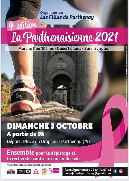 Course féminine de 5 km ouverte aux hommes déguisés en femmes, allure libre. Echauffement collectif par "Danse & Co" Marche mixte de 5 km dans le centre historique de Parthenay. Course et marche caritative en faveur du cancer du sein. les bénéfices sont donnés à la ligue contre le cancer. Echauffement course et marche Epreuve ouverte aux handicapé(e)s, Epreuve sans classement, Catégories autorisées MI->V5.