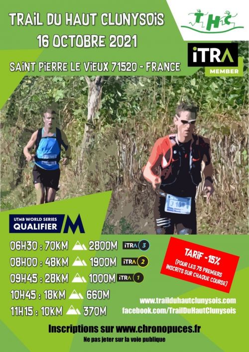 Le Trail du Haut Clunysois (THC) avec 5 courses au programme de cette journée sportive, avec circuits modifiés ! Vous ne découvrirez ces circuits que lorsque que vous serez en course ! Vous aurez le plaisir de courir en pleine nature sur des chemins de campagne et de massifs forestiers dans notre belle région du Haut Clunysois en Bourgogne du sud.