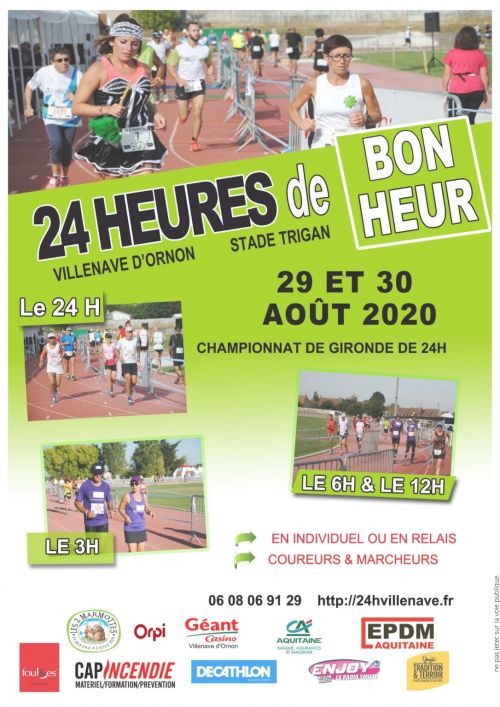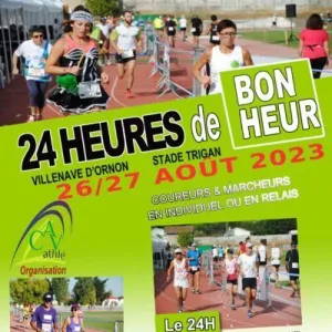 11ème édition du ''24 heures de bonheur'' de Villenave d'Ornon. Le grand défi sportif et les valeurs humaines de cette épreuve permettront à tous de vivre des grandes émotions durant 3h, 6h, 12h ou 24h, en étant à la fois acteurs et spectateurs de l'évènement. Les bénévoles du CAV sont prêts à vous faire passer un beau week-end sportif et convivial.
