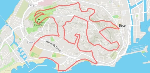 parcours de 9 km dans les petits chemins du Mont Saint ClairCat. autorisées CA->VE.