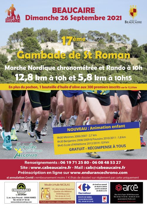 La Gambade de Saint Roman avec un parcours 100 % plat. 1 ravitaillement parcours - 1 ravitaillement arrivée.