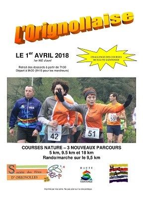 Boucle de 5km, départ du stade d'Orignolles, passage dans les chemins, traversée du bourg, retour au stade. Ouvert à tous à partir de minime. Catégories autorisées CA->V5.