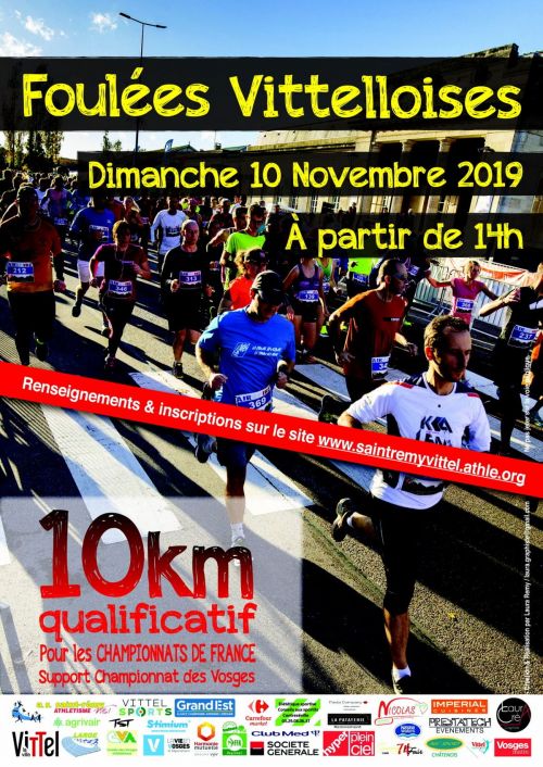 Courses organisées par l'AS Saint-Rémy Vittel athlétisme avec les 10 km qualificatifs pour les championnats de France. Nouveau : dossards, inscriptions, récompenses au palais des congrès de Vittel. Récompenses : Prime pour les 5 premiers hommes et 5 premières femmes ; Récompenses pour les 1ers de chaque catégorie ; Récompenses surprises parmi les arrivants.