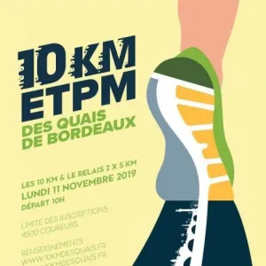 Tous les 11 novembre a lieu le 10 km des Quais de Bordeaux, organisé entièrement par des Bénévoles de Bordeaux-Athlé (section d’athlétisme du Stade-Bordelais). Pour les sportifs et coureurs à pied, cette course est devenue un rendez-vous incontournable. Le parcours, mesuré par des officiels de la Fédération Française d’Athlétisme, vous fera découvrir les quais de Bordeaux, le pont Chaban, le pont de Pierre, le miroir d’eau… Les 10 km ETPM des quais de Bordeaux est Label régional de la Fédération Française d’Athlétisme et qualificatif pour les championnats de France.