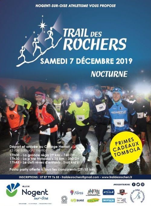 Participez au trail nocturne avec plusieurs parcours dans les forêts de Nogent sur Oise. Parcours de 30 kms avec la montée de la grande Régis, 15 kms et un trail kids pour les enfants. Comme en 2018 le 29km a obtenu le label trail régional. Pour garder l’esprit du trail, limiton à 600 places.