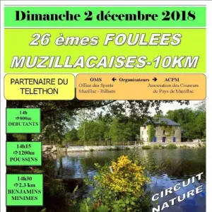 10km Nature (piste, route et sous-bois) à 15h. Nouveau circuit avec deux passages en sous-bois. Course solidaire avec le téléthon. Récompenses pour tous.