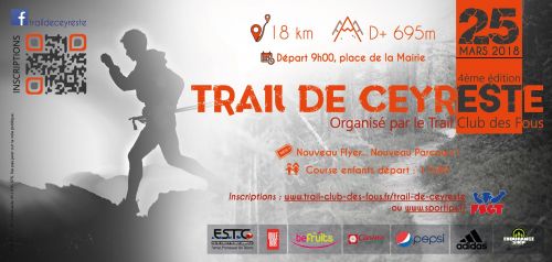 4ème édition du Trail de Ceyreste. Le Trail Club des Fous organise le Trail de Ceyreste en semi autosuffisance (1 seul point de ravitaillement) sur pistes sentiers, passages sur crêtes et terrains accidentés.