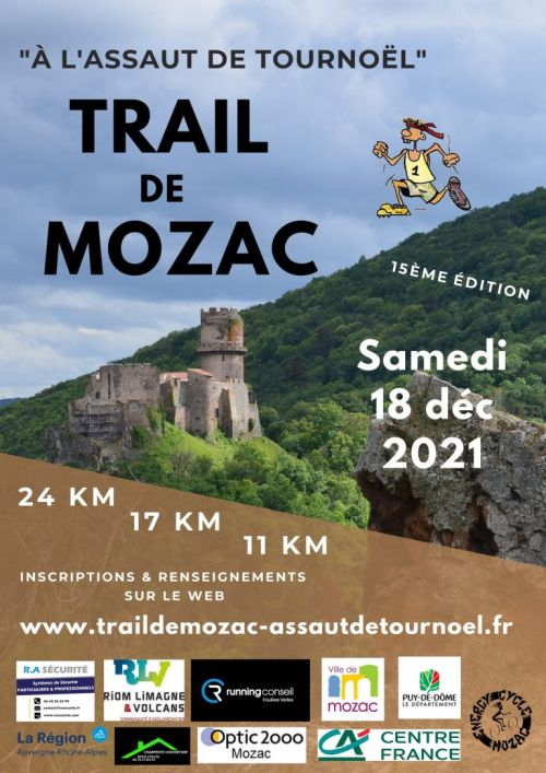 Trail de Mozac "A l’assaut de Tournoël". Le « Trail de Noël » est une épreuve nature de course à pied. Notre course se veut dans « l’esprit trail » avec un parcours varié, du dénivelé, et un maximum de passage dans la nature. Afin de préserver la qualité de ce Trail, pour que chacun profite de l’environnement et soit bien servit aux ravitaillements … nous limitons l’épreuve à 800 traileurs.