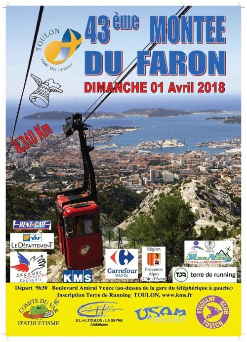 L’Association «Organisation Faron Pédestre » organise en collaboration avec les clubs : S L HOSPITALIERS TOULON, TEC, USAM, le Comité du Var d’athlétisme et la ville de Toulon, la 43ème Montée du Faron. Ce sera la 1ere course du challenge RunAzur "Trophée des Grimpeurs " Course comptant aussi pour le challenge départemental et Spiridon CA