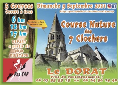 La course des 7 clochers est composé de deux parcours ayant des parties communes, le 17kms retrouve le 8kms après 6,5 kms de courses et se sépare au 9,5 kms soit 3 kms communs. Le nombre de participants est limité à 250 coureurs.