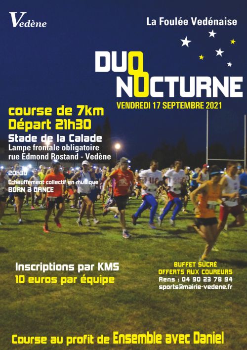 Duo Nocturne de Vedène au départ du stade de la CALADE course de 7 km sur route et colline (une difficulté montée assez raide 400 métres)
