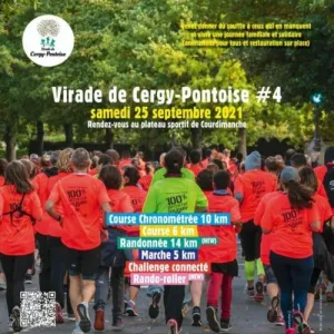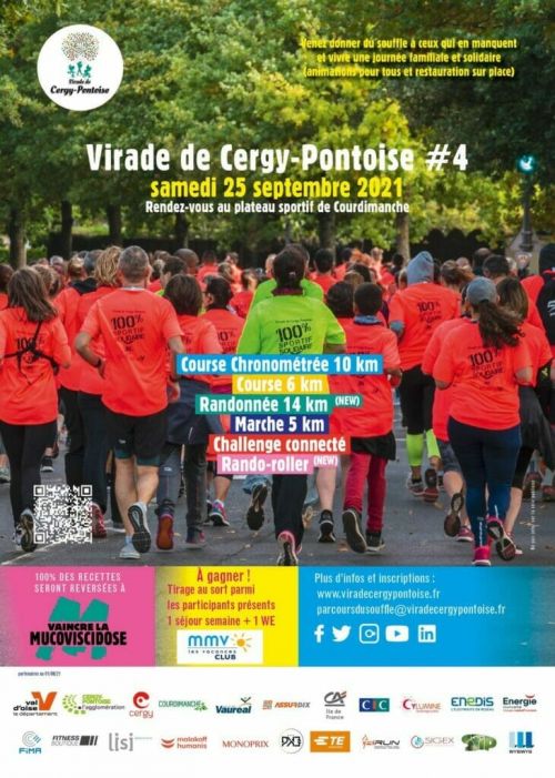 Course organisée dans la cadre de la Virade de l'Espoir de Cergy-Pontoise, journée au profit de Vaincre la Mucoviscidose. Parcours de 10km sur les communes de Courdimanche, Cergy et Vauréal.