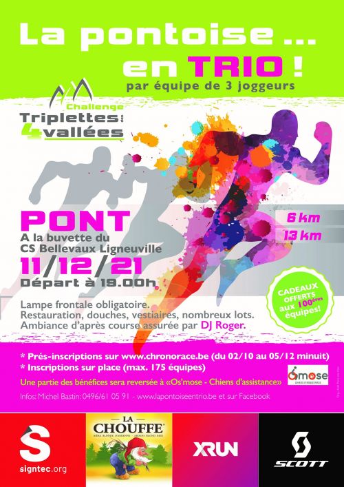 L'asbl « Pont nos ôtes » a le plaisir de vous inviter à la nouvelle édition de sa triplette « La Pontoise ... en trio »