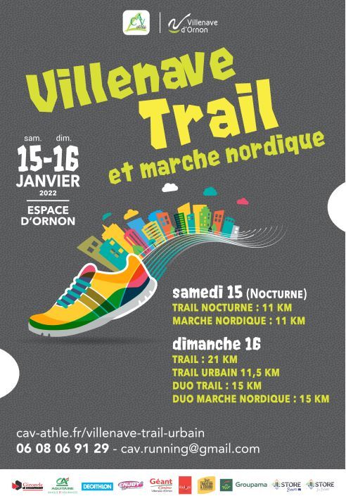 Le Villenave Trail avec un parcours bien aprécié l'an dernier sur un parcours vallonné 80% à 100% nature sur les propriétés des châteaux Olivier, Hannetot, Grandmaison et Carbonnieux, et une partie urbaine sur le quartier Peyrehaut et pour finir retour sur le château Olivier et arrivée sur le site de l'espace d'Ornon