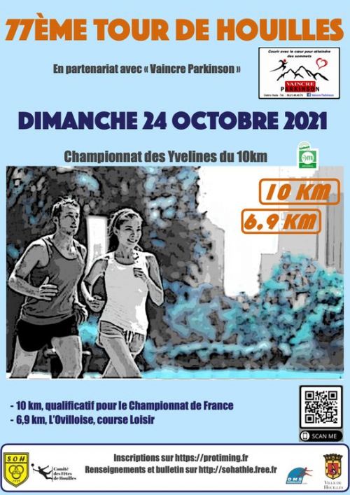 le Tour de Houilles sur 10 km (3 boucles), mesurage officiel, label régional FFA, qualificatif pour le championnat de France du 10 km, l’Ovilloise, 6,9 km (2 boucles) Course des Collèges, 3 km, ouverte aux Benjamins et Minimes, filles et garçons.