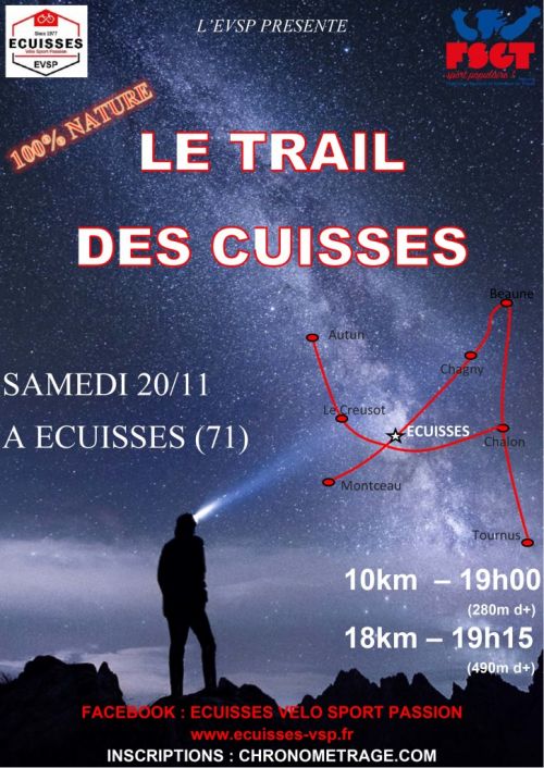 Trail Nocturne des Cuisses avec 2 parcours empruntant les mêmes chemins.