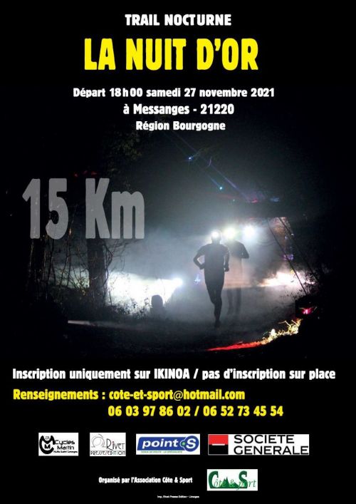 La Nuit d'Or, Trail nocturne limité à 800 coureurs. boissons chaudes, soupe à l’oignon à l’arrivée.