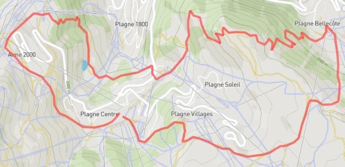 Un départ et une arrivée à Plagne Bellecôte, ce Trail est moins engagé que la 6000D. Ce parcours qui suit celui de la 6000D bifurquera au Dérochoire pour aller vers Plan Bois et remonter sur l'Arpette pour rejoindre celui de la 6000D puis descente sur Plagne Bellecôte.