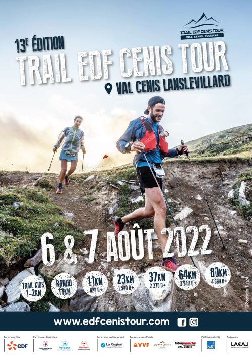 Le trail EDF Cenis Tour vous présente 5 parcours trails allant de 14km à 80km, entre 900m et 3700m D+, mêlant technicité et authenticité de la montagne. De vrais trails de montagne entre 1400 et 2700m d’altitude, une majorité de sentiers, des montées et des panoramas à couper le souffle, de vraies belles descentes …, en résumé, tous ce qui nous fait aimer le trail. Profitez-en pour découvrir ou faire découvrir la vallée de la Haute-Maurienne Vanoise, ses magnifiques villages, ses splendides panoramas et son lac d’altitude : le Lac du Mont-Cenis.