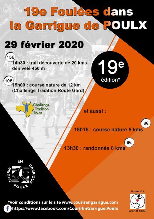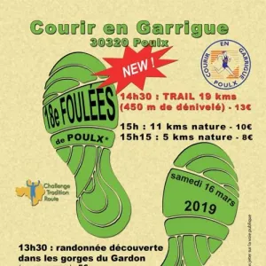 L'association COURIR EN GARRIGUE organise la 19ème édition des Foulées de POULX.