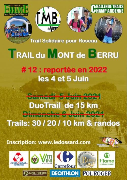 Course d'équipe en duo = 2 coureurs masculins ou féminines ou mixte. Course solidaire au profit de l'association "Roseau" de Reims. Trail uniquement sur chemins ( vignes, forets) sans aucune traversée de route. Récompenses aux 3 premières équipes hommes , femmes et mixtes du scratch. Catégories autorisées JU->V5.