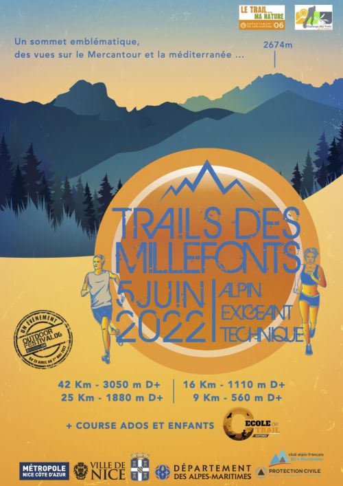 Avec comme point culminant le Mont Pépoiri à 2674m d'altitude, les Trails des Millefonts comptent parmi les courses des Alpes-Maritimes qui vous emmèneront au plus haut par les sentiers. Des parcours exceptionnels et uniques aux portes du Parc National du Mercantour.