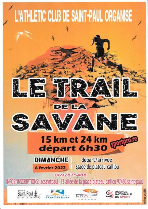 La Savane est un lieu bien connu des trailers de l’Ouest. Elle offre un terrain d’entrainement unique et très intéressant. Le Trail de la Savane est une course de 28 km pour 900 mètres de dénivelé positif au départ de Plateau Caillou. Le parcours démarre du stade et fait deux boucles identiques dans les nombreux sentiers de la Savane jusqu’au Cap La Houssaye avant de revenir au point de départ.