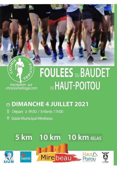 Tout nouveau parcours très roulant sur une boucle de 5km pour les foulées des baudets du Haut-Poitou avec un départ et une arrivée sur la piste du stade de Mirebeau. le 10 km est mesuré officiellement selon les normes FFA . Il est egalement possible de courir le 10 km en relais a 2 coureurs.