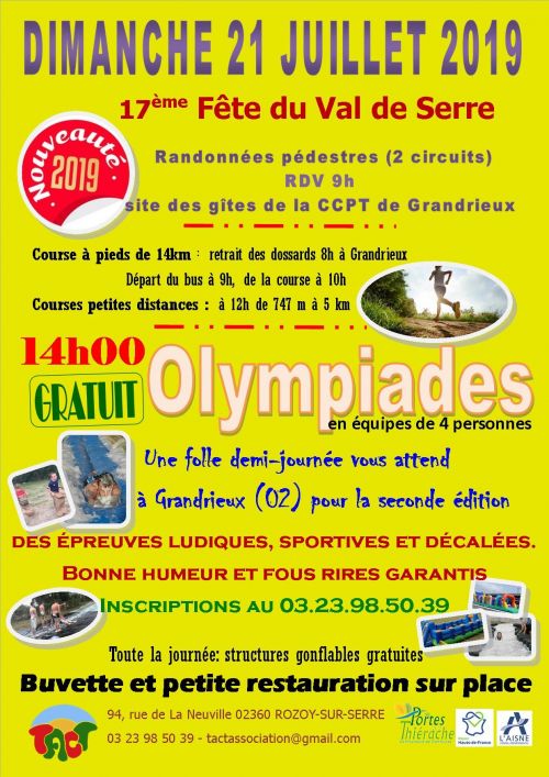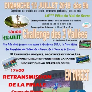 Après la traditionnelle course pédestre de la matinée, venez dès 13h en famille ou entre amis, jeunes ou plus âgés, de 7 à 87 ans, courageux et téméraires, sportifs ou un peu moins… Par équipes de 4 personnes, de la même commune ou de la même Vallée *, pour vous affronter lors de la 1ère édition des Olympiades du Challenge des 3 Vallées.