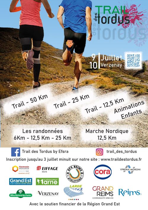 L'EFS Reims Athlétisme vous invite a participer au 10ème Trail des Tordus qu'elle organise à Verzenay. Au programme : 3 parcours Trail, des Marches nordiques loisirs ou randonnées pédestres, une marche nordique chronométrée, une ballade d'attente.