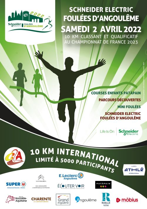 Organisé par le Grand Angoulême Athlétisme, le 10km National des Schneider Electric Foulées d'Angoulême s’impose aujourd’hui comme une épreuve incontournable dans le paysage sportif charentais. Crée en 2007 à l’issue de la naissance du Grand Angoulême Athlétisme, la première édition des Foulées rassemblait 450 participants sur un parcours en 3 boucles autour du quartier St Cybard.