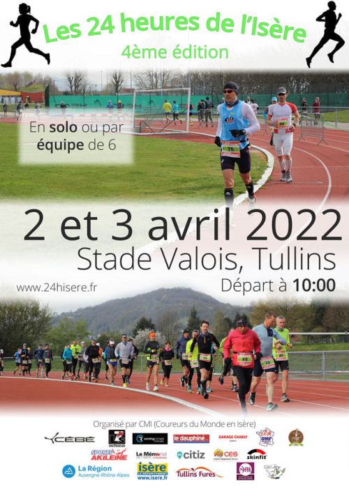 Course d'une durée de 24 heures sur parcours plat labellisé FFA dans le complexe sportif Jean-Valois à Tullins. La course se déroule à Tullins, en Isère, au stade Jean Valois. Au pied des contreforts du massif du Vercors, et au coeur des noyeraies dauphinoises, le circuit propose un cadre agréable et verdoyant dont vous pourrez profiter pendant 24 heures…