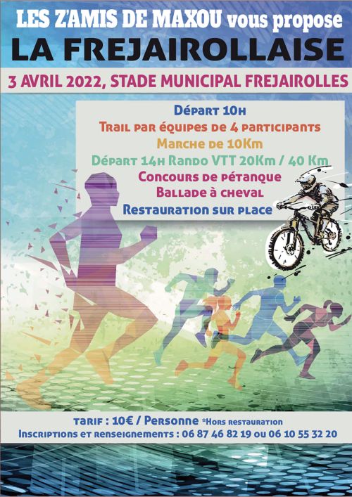Au programme de La Fréjairollaise : un trail a effectué par équipe de 4 sur une boucle de 10 Km à parcourir pour chaque participant, une marche nordique de 10 km et deux randonnées VTT (une de 20 km et une de 40 km).