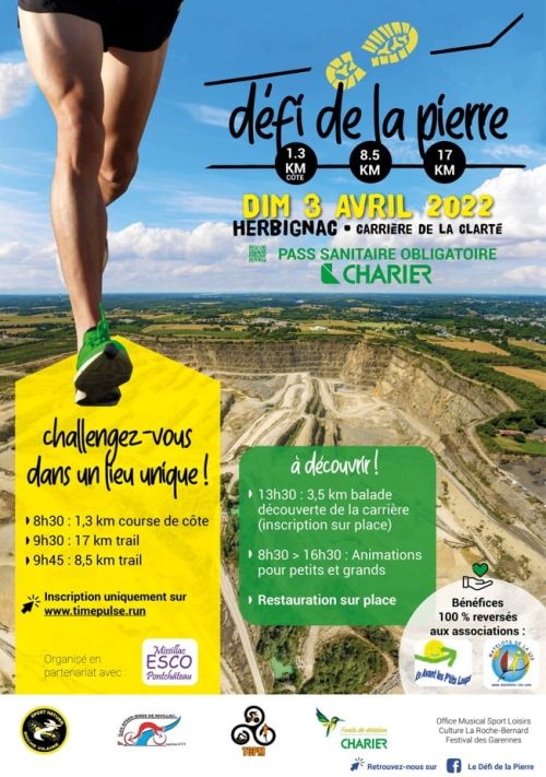 L’ESCO Pontchâteau et l’entreprise CHARIER vous proposent le Défi de la Pierre avec 3 courses se déroulant dans l'enceinte de la Carrière de la Clarté.