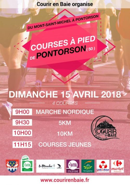 Le circuit de 10 km, officiellement mesuré et labellisé FFA, partira du barrage du Couesnon empruntant le bord du Couesnon puis passage en ville pour une arrivée sur le stade. La Marche Nordique s'élancera à 9 h 00 du stade de Pontorson pour se rendre le long du Couesnon pour revenir en ville et finir au stade de Pontorson