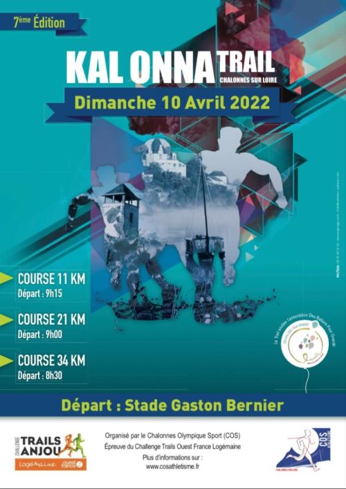 Kal Onna Trail organisé par le COS athlétisme de Chalonnes sur Loire avec 3 parcours au programme pour contenter tous les coureurs.