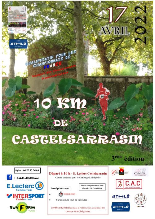 L’Office Municipal des Sports de Castelsarrasin associé au CAC Athlétisme et au Comité Départemental d’athlétisme du Tarn et Garonne organisent la 1ère course de la ville de Castelsarrasin.