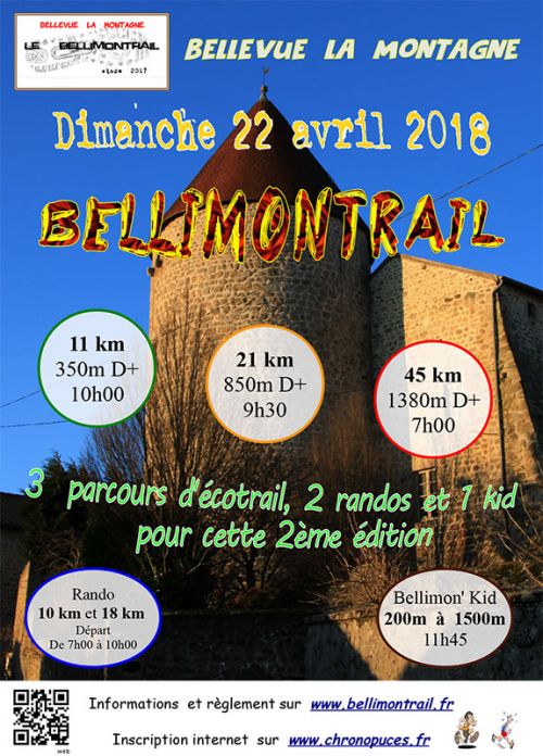 Après une première édition presque réussie, le Bellimontrail est de retour le dimanche 22/04/2018. Les bellimontains vous proposent toujours les 3 parcours de trail 11 km, 21 km et le fameux 45 km, course sur le principe de la "course de la Barclay". Pour rappel, Bellevue la Montagne, est située sur le bord de la plaque casadéenne, au dessus des gorges de l'Arzon. Par cette disposition géographique, notre commune offre de superbes panoramas sur l'est et le sud du département et même bien plus loin ... Vous en doutez encore ! Alors, Il vous suffira de chausser vos baskets et de fouler nos chemins !