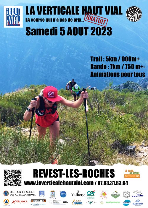 La Verticale Haut Vial, course gratuite, est née d'un concept très simple: "apporte un plat cuisiné maison, récupère ton dossard, participe à l'événement et prends le temps d'observer". Organisé par l’association Mars-Vénus de Revest Les Roches en collaboration avec la municipalité, le comité des fêtes et l’association des chasseurs de Revest les Roches.